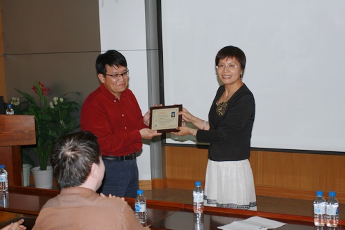 韩艳春主任为王维教授颁发高分子科学系列讲座荣誉奖状